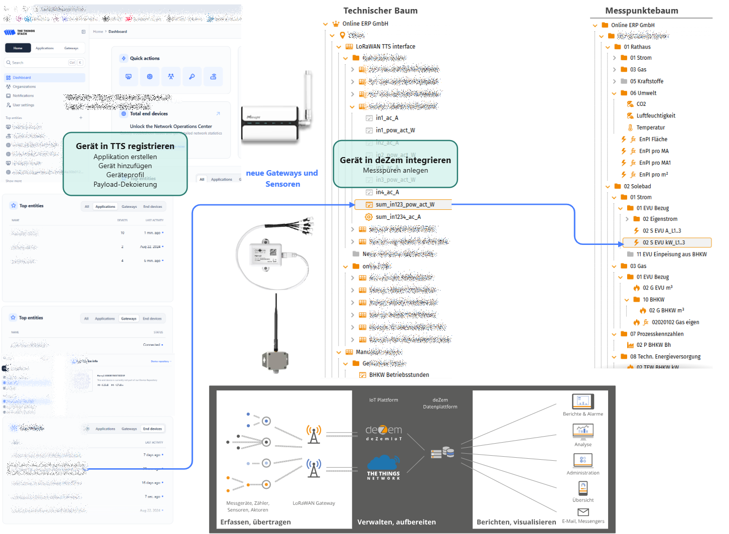 - LoRaWAN-Gateways leiten Daten in Ihre EnMS-Cloud